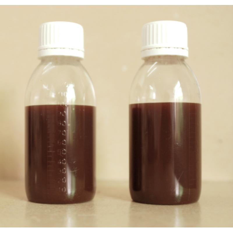 新一代不同形狀聚合硫酸鐵實物圖:固體粉末聚合硫酸鐵( 黃色),紅色液體聚合硫酸鐵。顆粒狀聚合硫酸鐵: